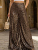 Fashionable high-waisted sequined wide-leg pants