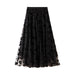 Discover the Flocked Tulle Pleated Slim Fit Midi Skirt, a piece designed to blend style and everyday comfort.