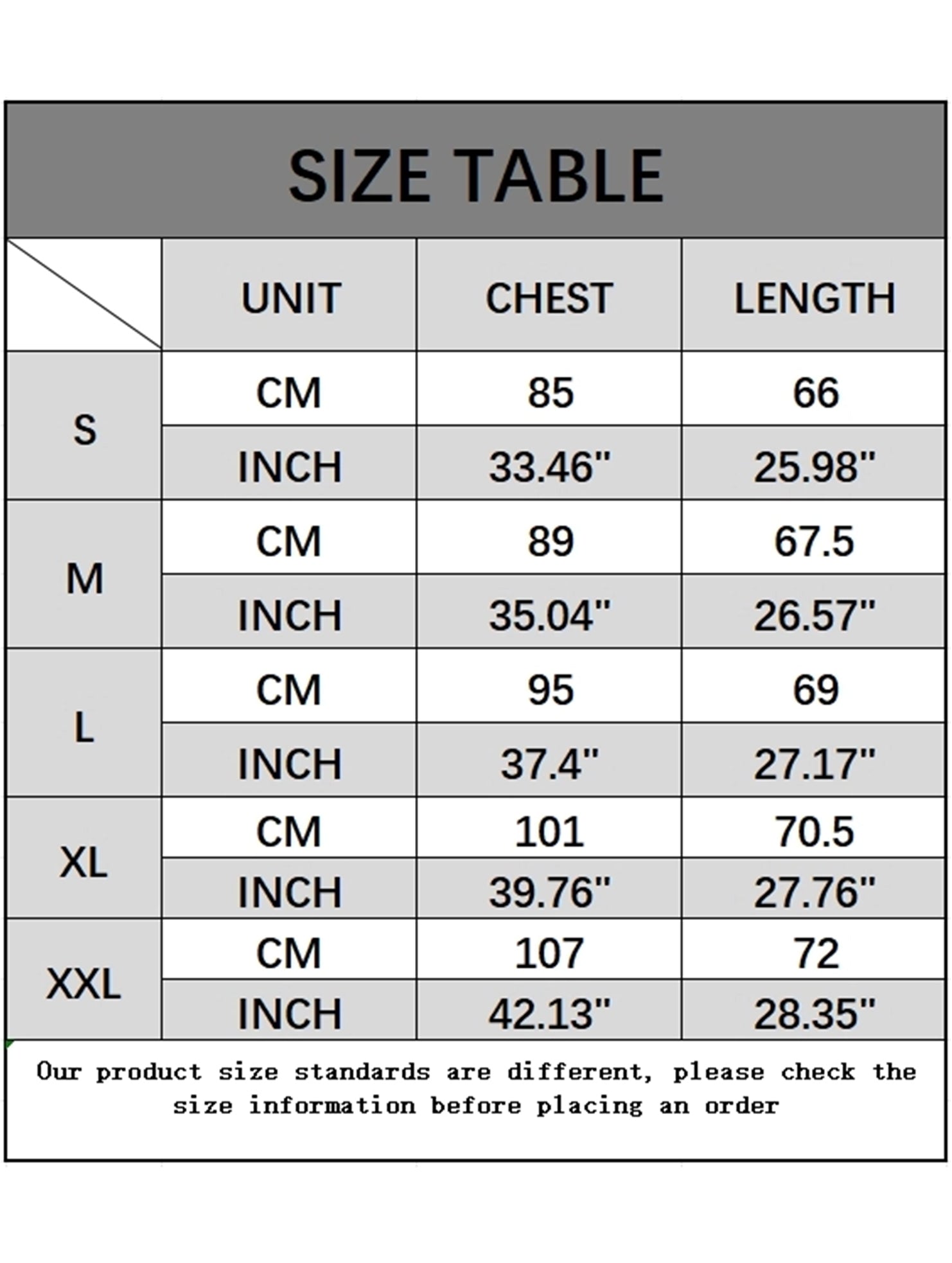 Sizes: S, M, L, XL, XXL