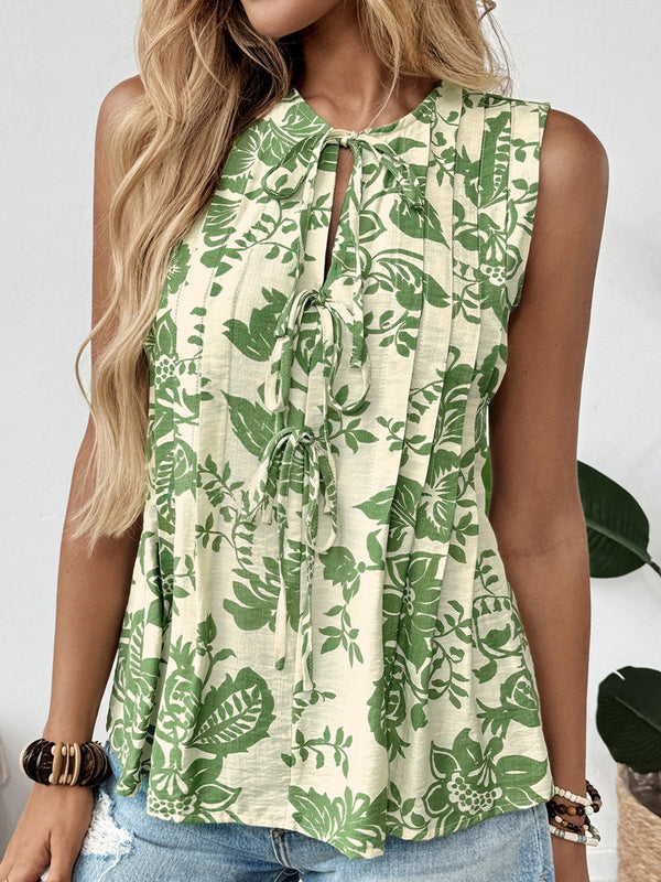 Floral Sleeveless Tie Blouse_CWTSTSL00187