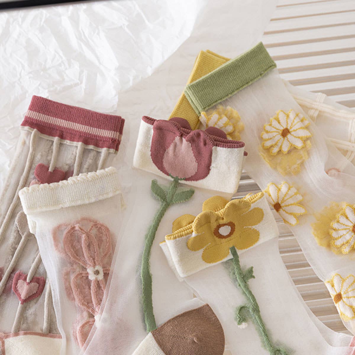 The Floral Summer Sheer Mesh Socks For Womens adds a refined touch with its clean and modern silhouette.