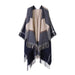 The Fringed Shawl Plaid Scarf Faux Cashmere Slit Cape adds a refined touch with its clean and modern silhouette.