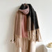 Experience versatile styling with the Geometric Fringe Wool Scarf Thick Colorblock Shawl, crafted to adapt effortlessly.
