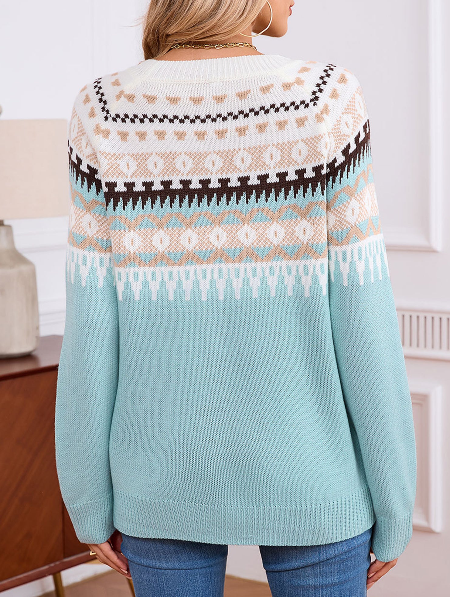 geometric pattern crew neck sweater