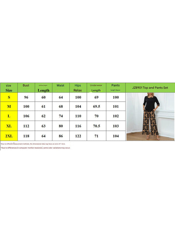 Geometric pattern top and wide-leg pants set