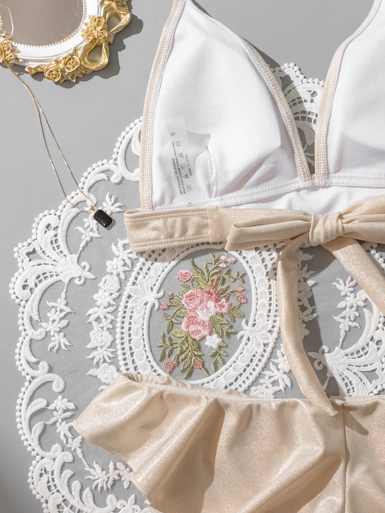 GOLD FOIL BIKINI SET SEXY BACKLESS SWIMSUIT_CWMW0690