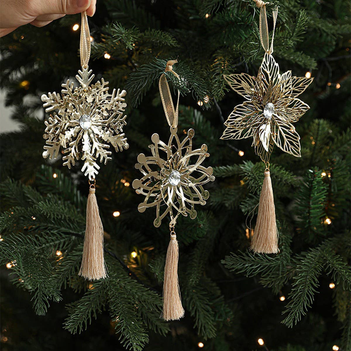 The Gold Metal Snowflake Hanging Xmas Tree Decor adds a refined touch with its clean and modern silhouette.