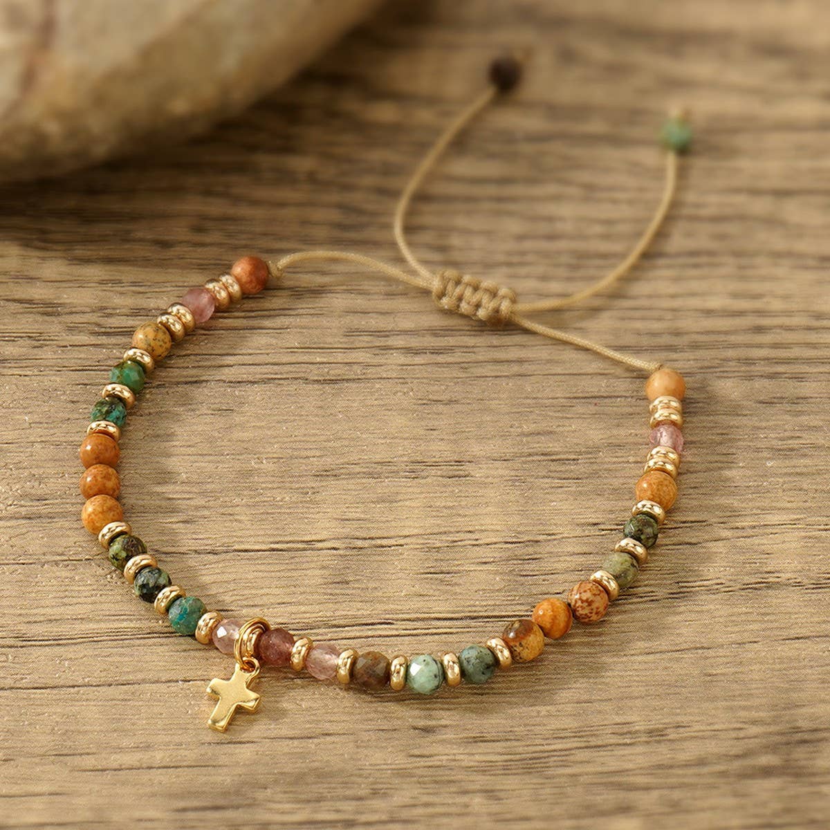 Discover the Gothic Cross Natural Semi Precious Stone Bracelet, a piece designed to blend style and everyday comfort.