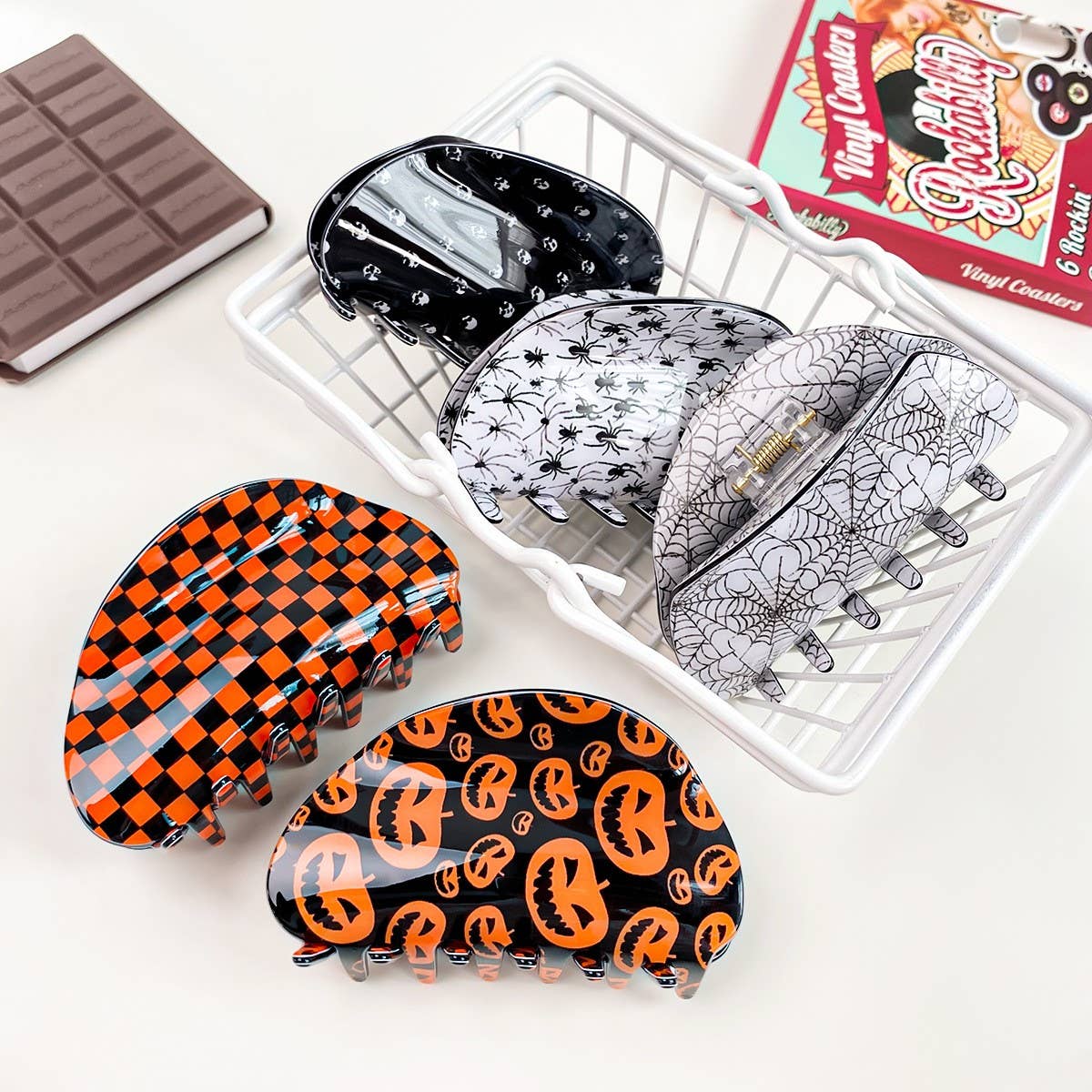 HALF CIRCLE PUMPKIN SPIDER WEB SKULL HAIR CLIP_CWAHA1442