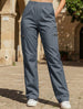 High-waisted, zippered, loose-fitting, straight-leg, floor-length trousers