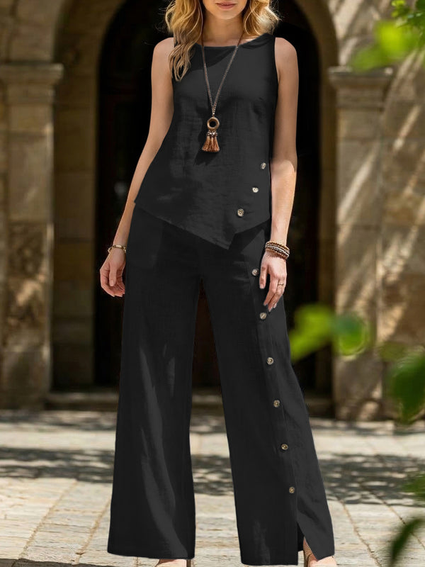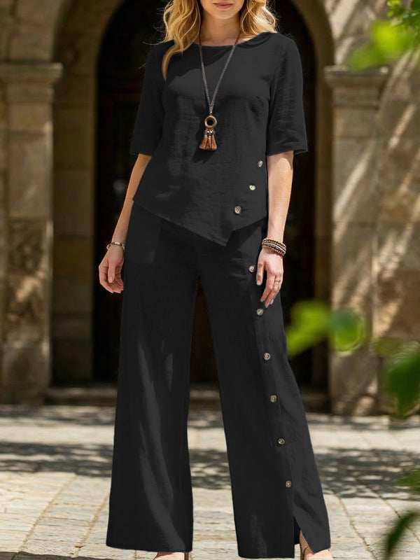 ThisIrregular Hem Shirt Pants Set balances modern styling with practical comfort for daily wear.