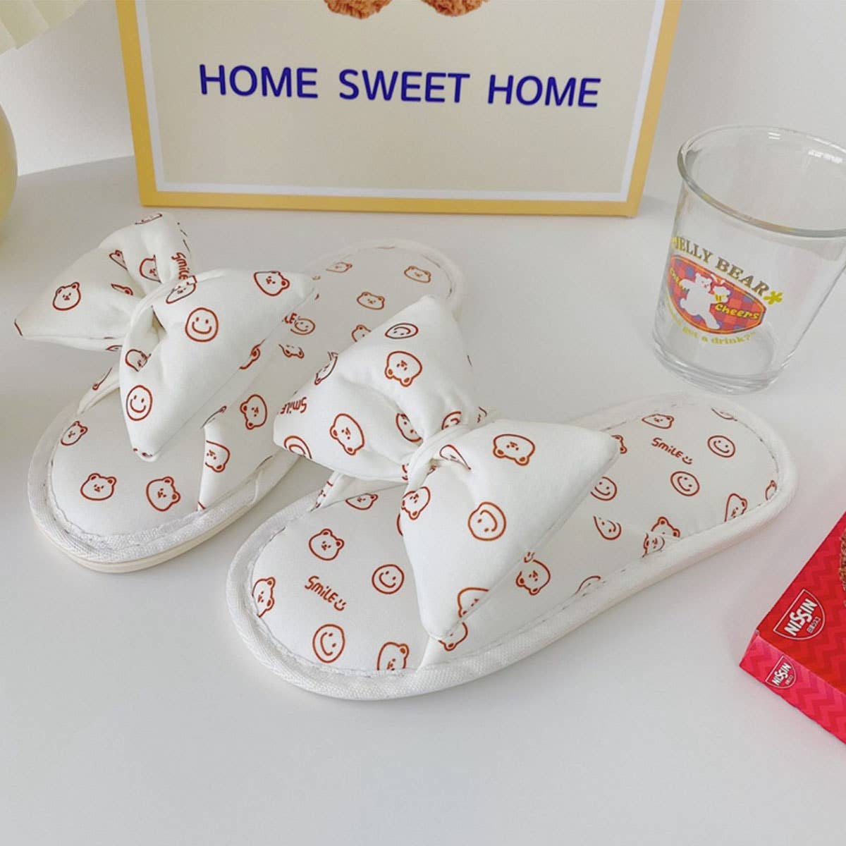 KLEIN BLUE SMILEY BEAR BOW SLIPPERS FOR WOMEN_CWMM2982