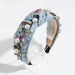 The Knotted Denim Headband With Colorful Rhinestones adds a refined touch with its clean and modern silhouette.