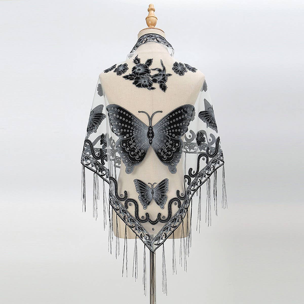 Experience versatile styling with the Lace Butterfly Embroidered Triangle Shawl, crafted to adapt effortlessly.