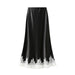 LACE TRIMMED SATIN A LINE MIDI SKIRT WITH DRAPING_CWBMS0327