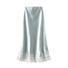 Designed for everyday use, the Lace Trimmed Satin A Line Midi Skirt With Draping offers fluid movement and timeless appeal.