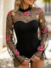 Lace-trimmed see-through high-neck bodysuit