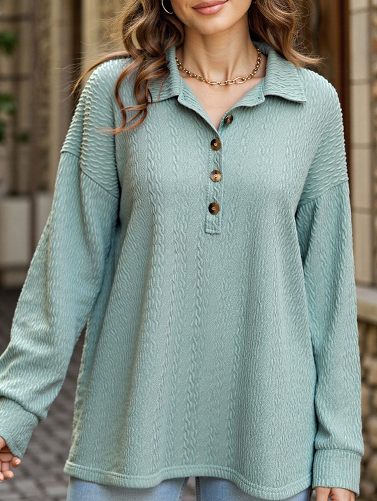 Lapel Casual Button Loose Long Sleeve Sweatshirt