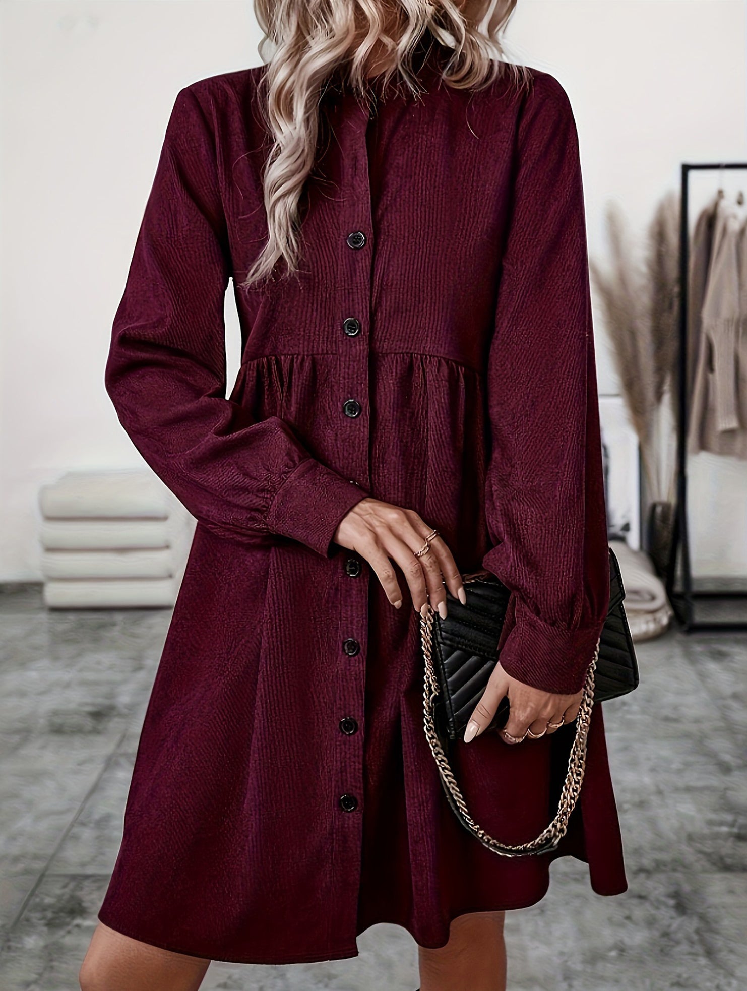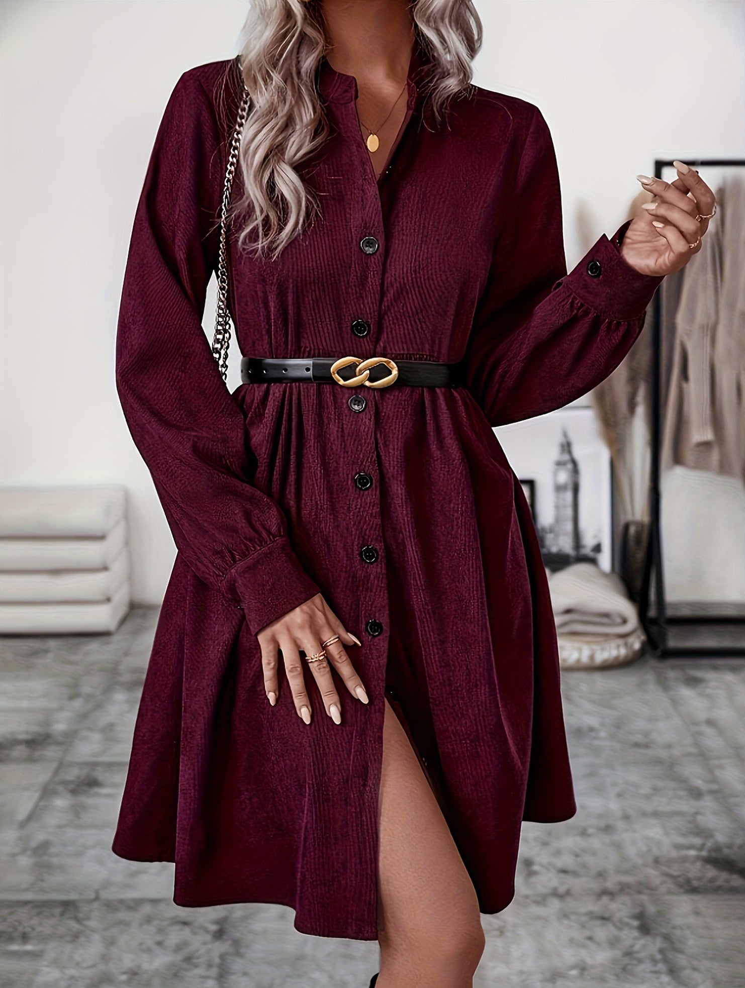 Lapel Single-Breasted Long-Sleeved Dress