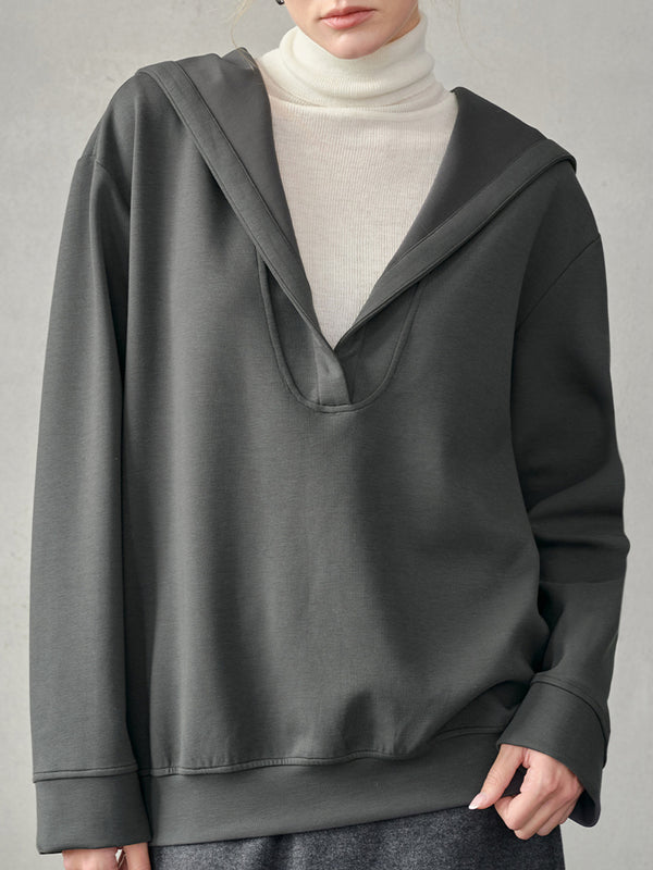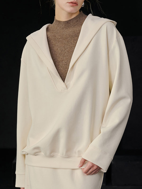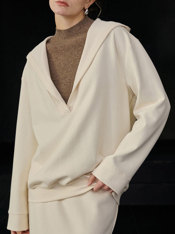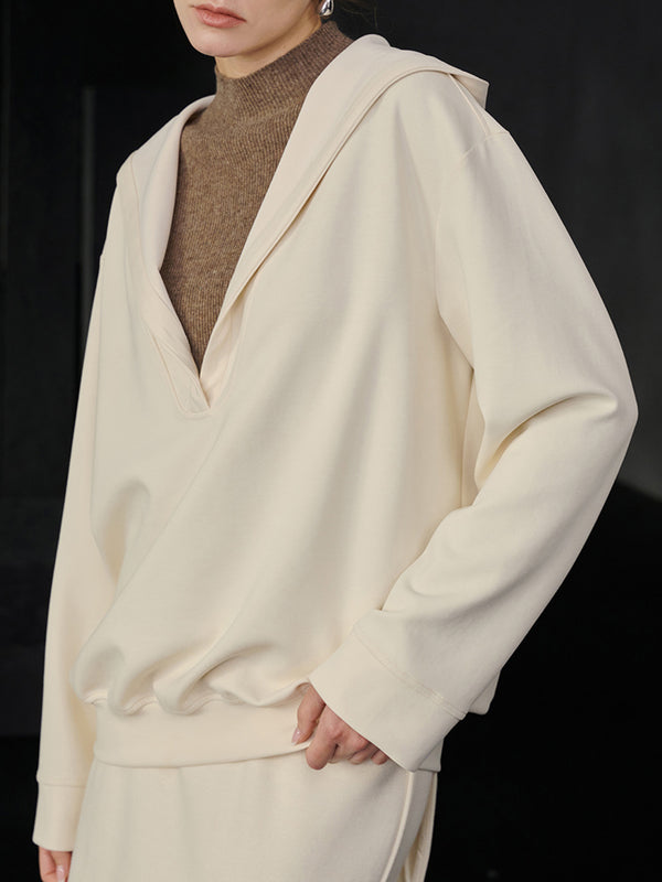 This relaxed pullover combines the breathable texture of linen with the softness of cotton. Featuring a deep V-neck, an adjustable hood, and a roomy silhouette, it offers effortless style and everyday comfort. Perfect for layering or wearing solo, it moves seamlessly from quiet mornings to casual outings.