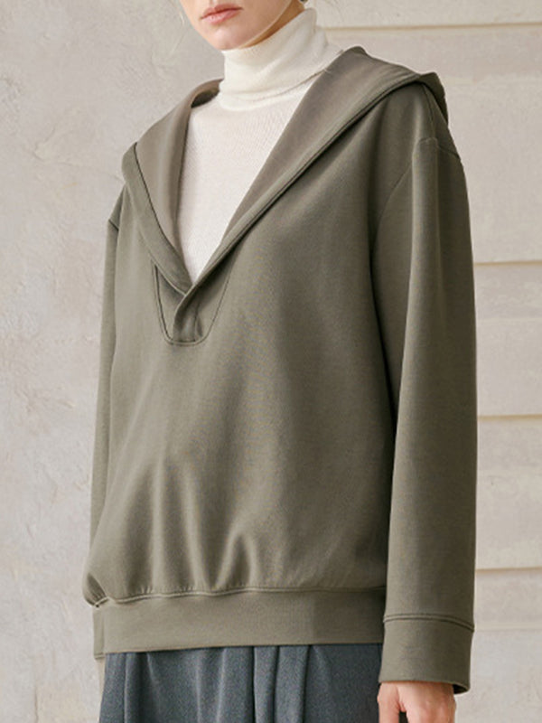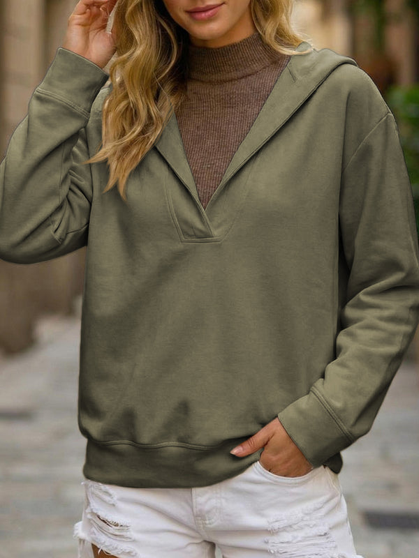Linen Blend V Neck Hooded Pullover Top_CWTTL01216