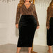 LONG SLEEVE BODYCON DRESS DEEP V PATCHWORK_CWDMD5967