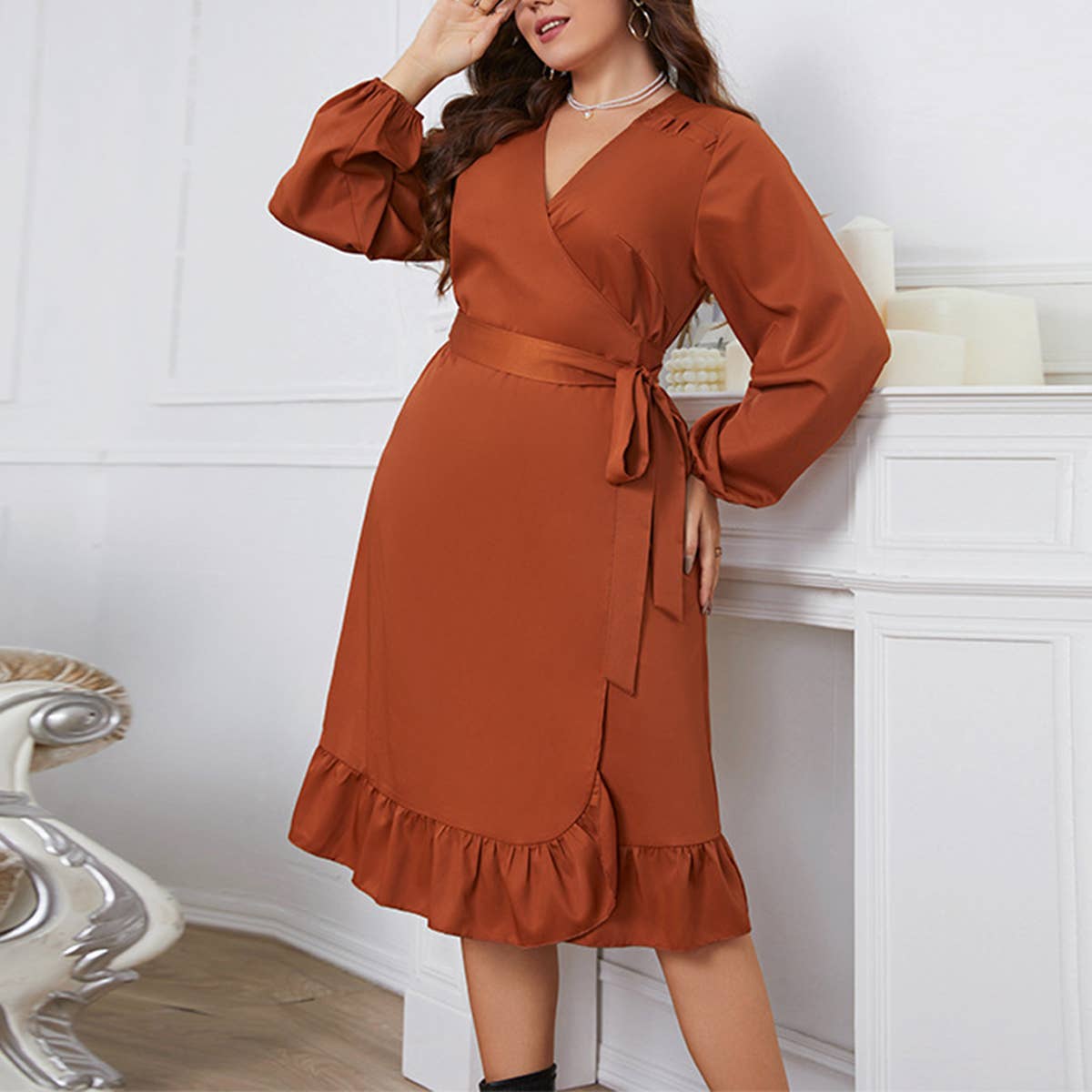 A polished essential, the Long Sleeve Wrap Dress For Plus Size Women transitions seamlessly from casual to elevated looks.