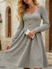Long-sleeved square-neck solid-color dress