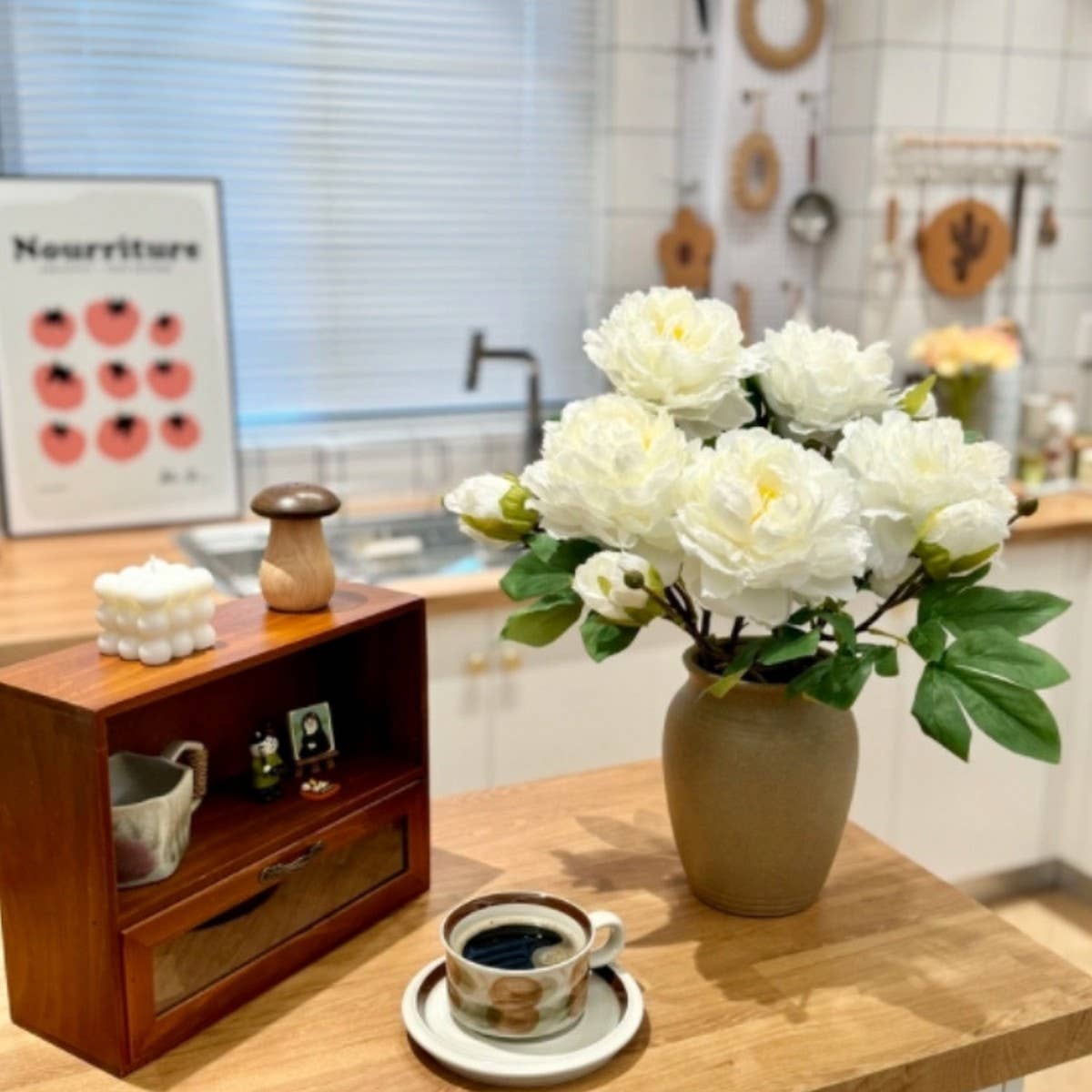 The Long Stem Double Peony Artificial Flower Decor adds a refined touch with its clean and modern silhouette.