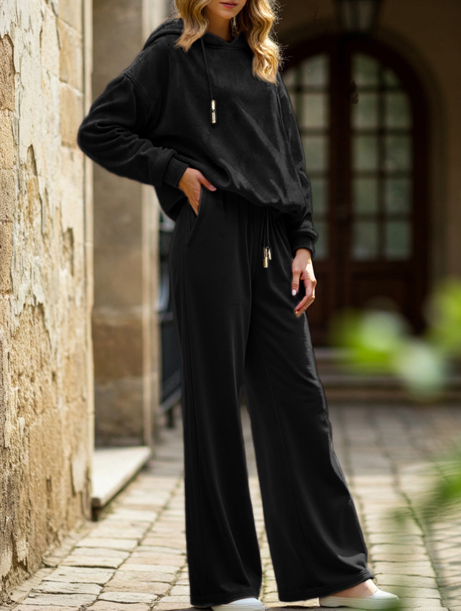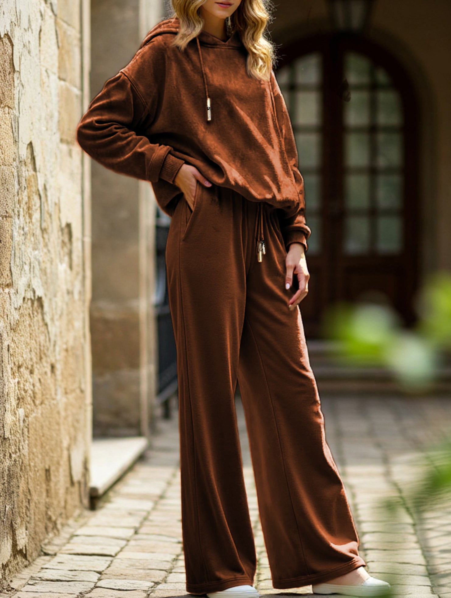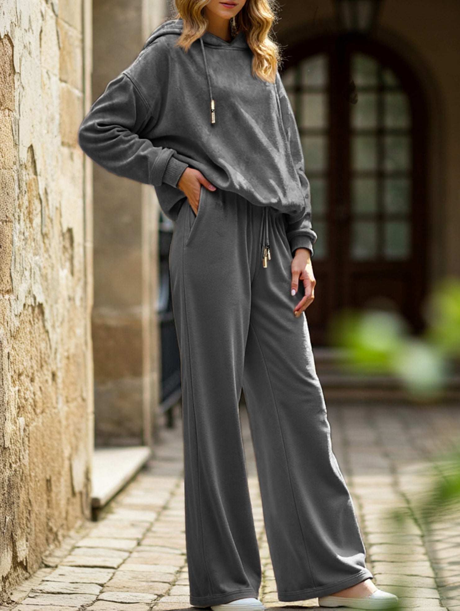Loose-fitting two-piece leopard print hoodie set