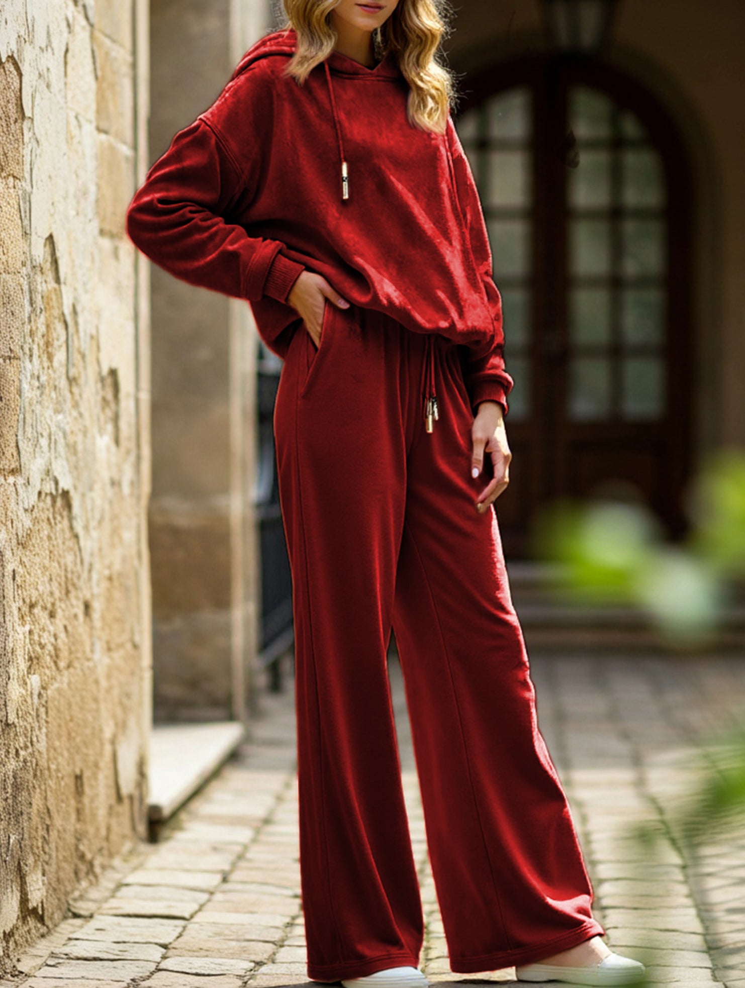 xLoose-fitting two-piece leopard print hoodie set