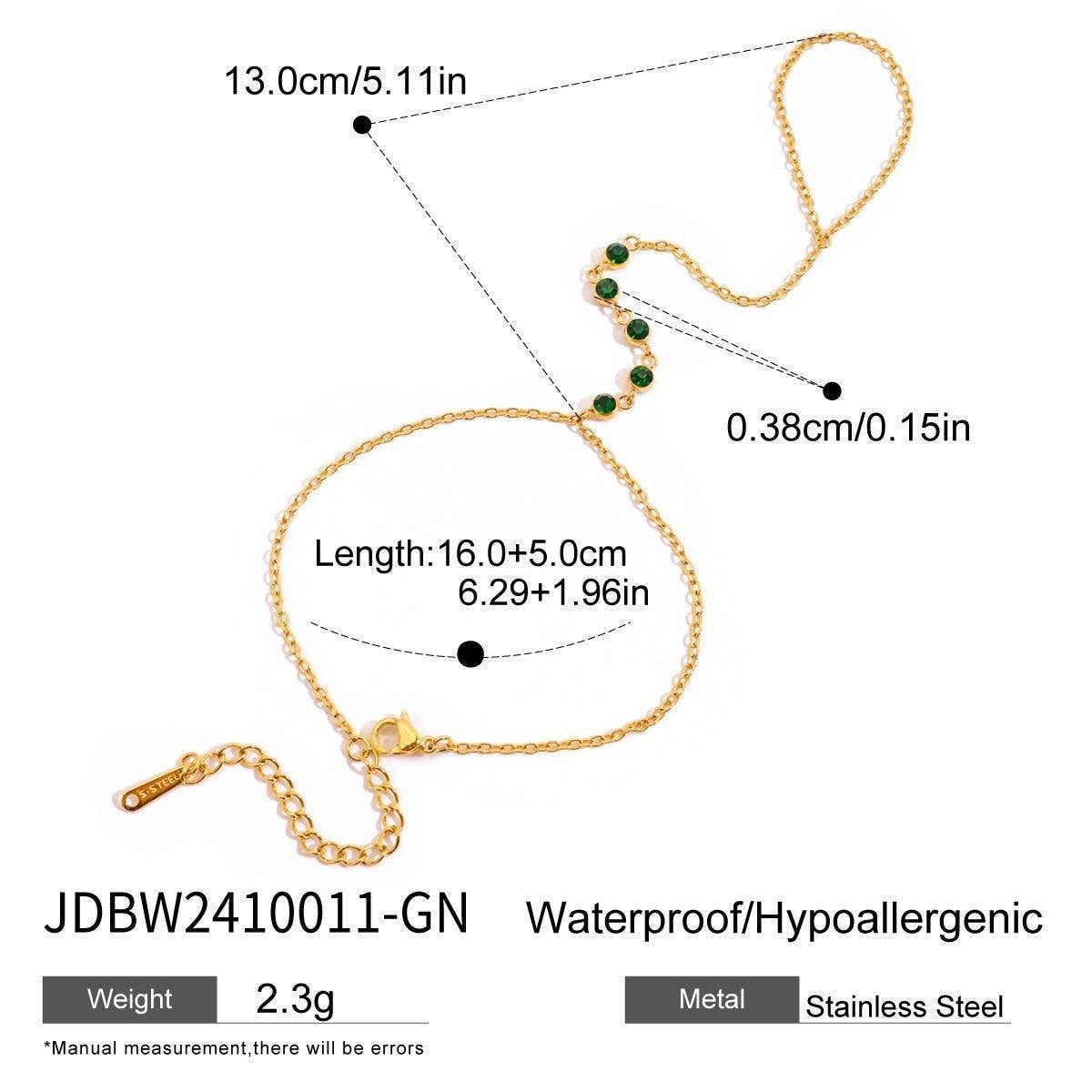 The Luxury Green Zircon Finger Chain 18K Gold Steel adds a refined touch with its clean and modern silhouette.