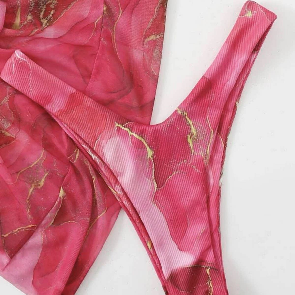 The Marble Print Bikini Set Sexy 3 Piece Swimsuit adds a refined touch with its clean and modern silhouette.