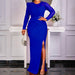 The Mesh Splicing Solid Color Fashionable Slit Dress adds a refined touch with its clean and modern silhouette.