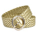 Discover the Metal Round Buckle Patent Leather Braided Wide Belt, a piece designed to blend style and everyday comfort.