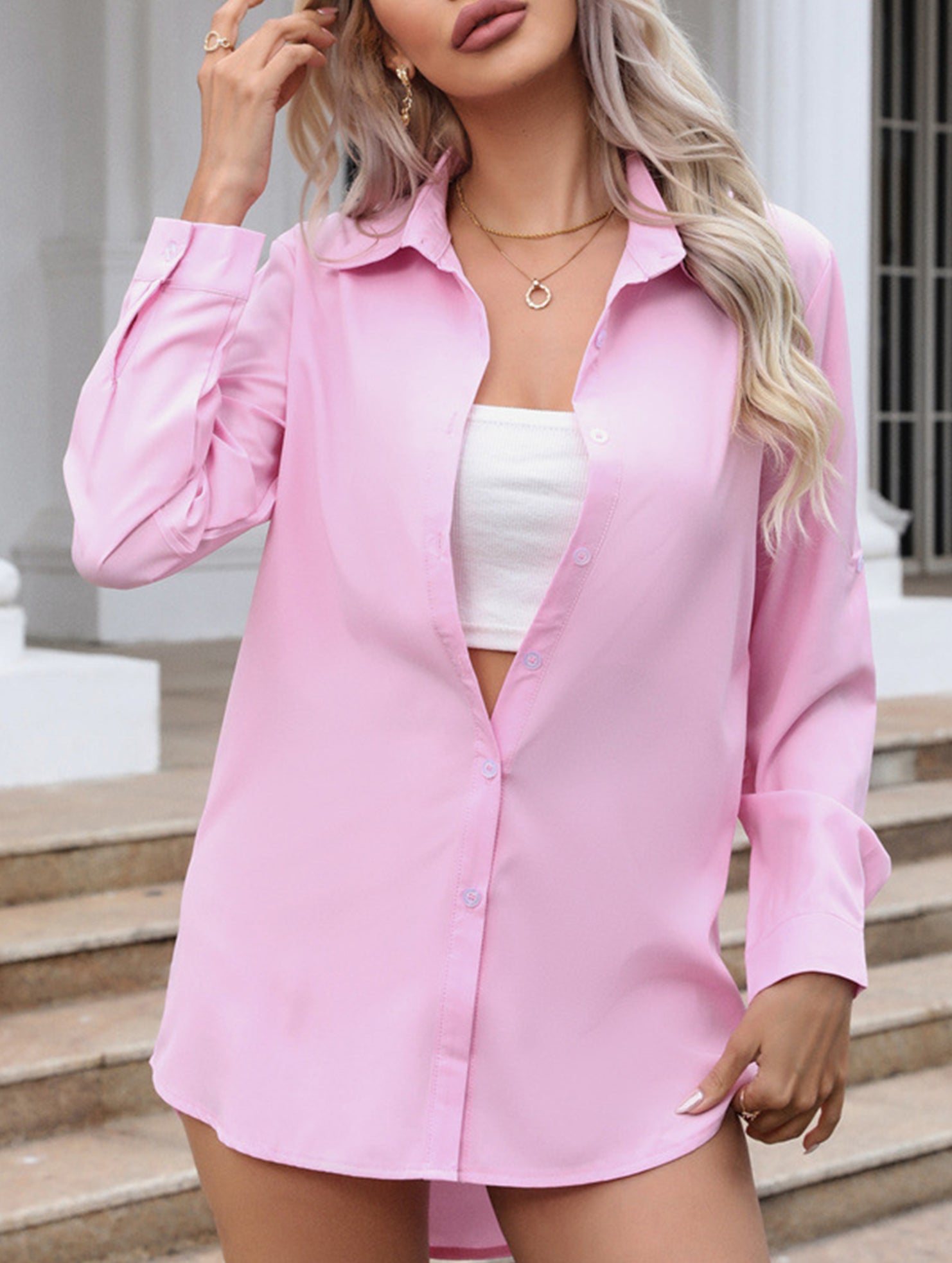 The Mid-length loose-fitting sexy chiffon nightgown shirt delivers a polished look while remaining comfortable and functional.