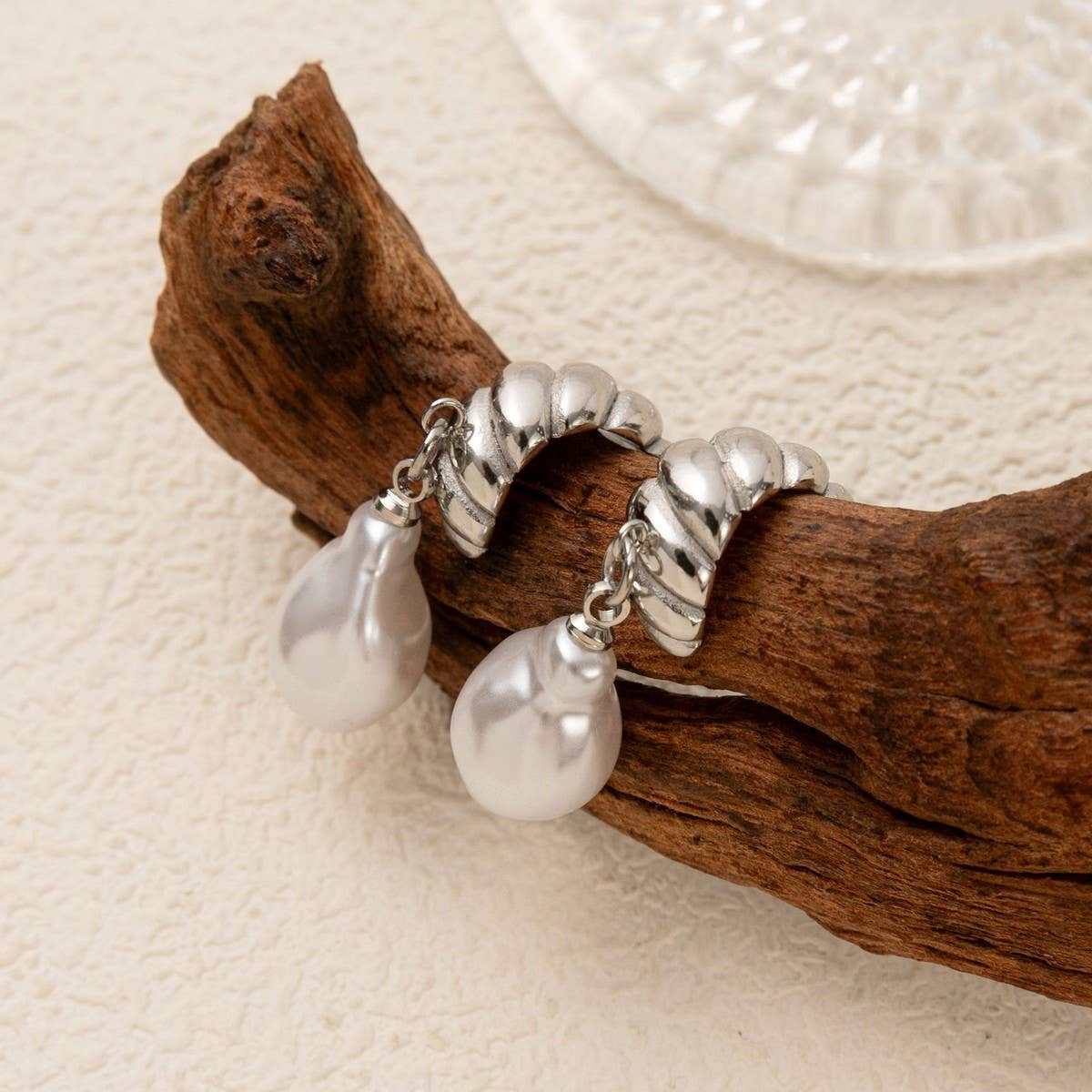 The Minimalist Irregular Pearl Earrings 18K Gold Steel adds a refined touch with its clean and modern silhouette.