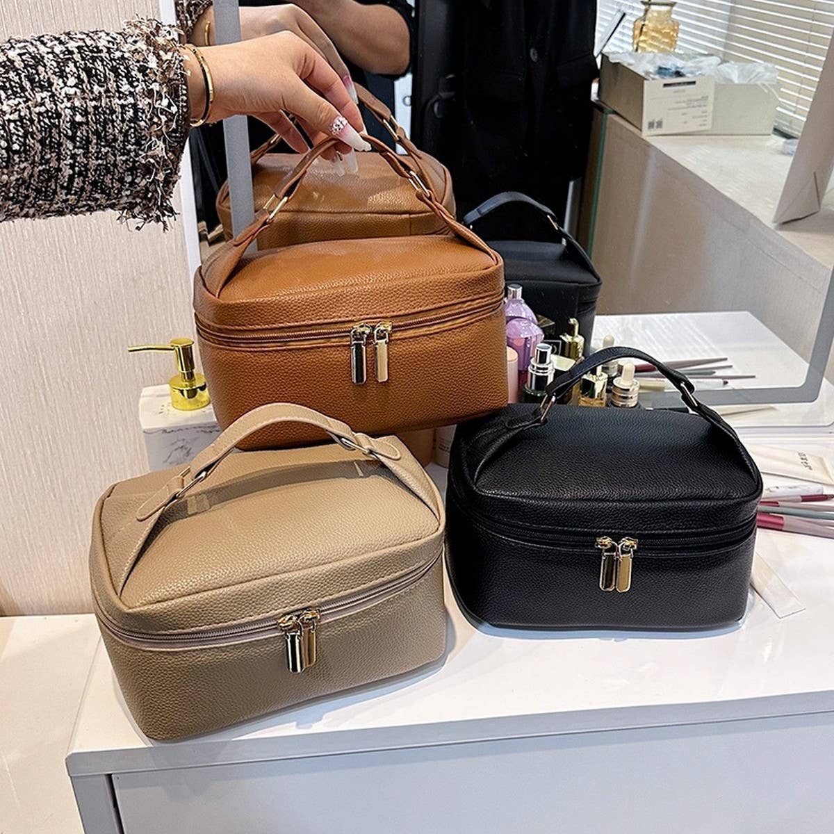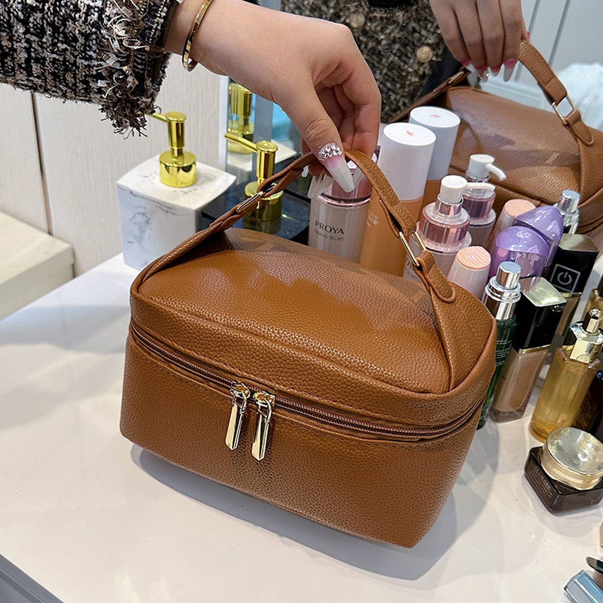 Styling versatility influenced by themes such as makeup bag, cosmetic bag, make up bag, travel makeup bag, travel cosmetic bag, cosmetic travel bag, makeup travel bag, makeup organizer, toiletry bags for traveling women, toiletry bag, small makeup bag, big makeup bag.