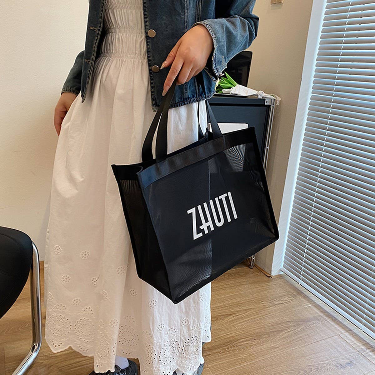 A polished essential, the New Letter Mesh Large Capacity Cosmetic Bag transitions seamlessly from casual to elevated looks.