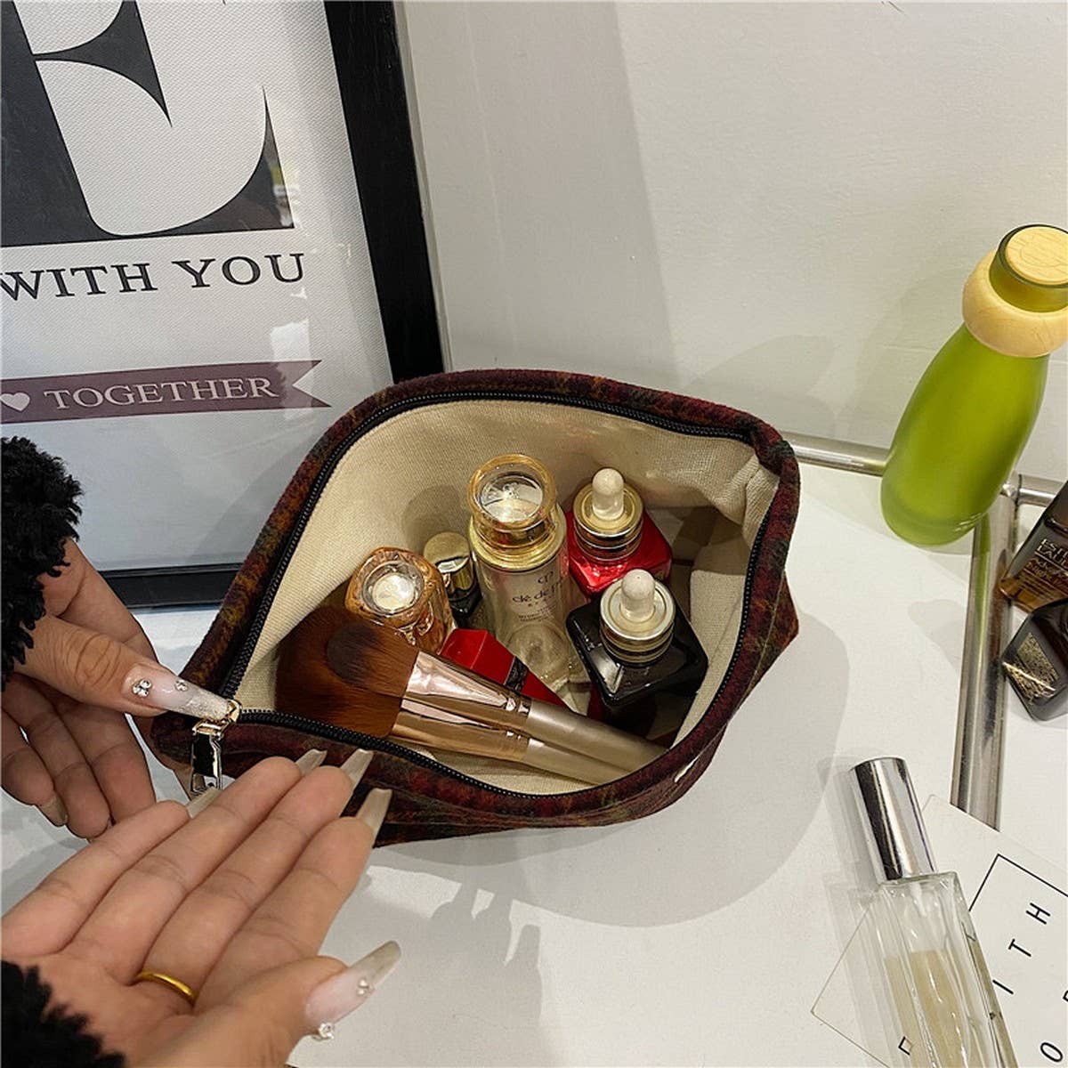Experience versatile styling with the New Retro Plaid Large Capacity Cosmetic Bag, crafted to adapt effortlessly.