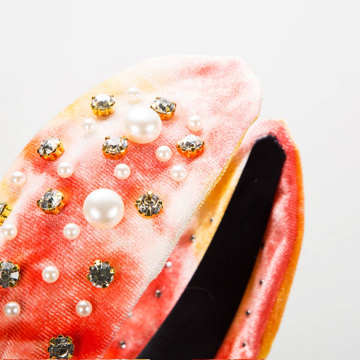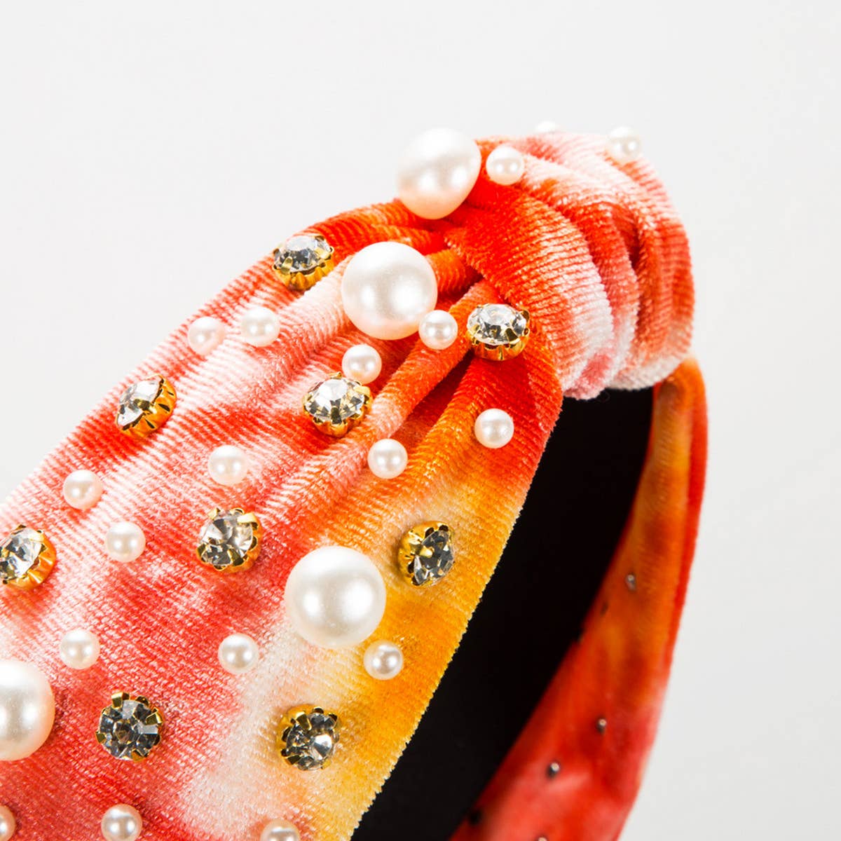 NEW TIE DYE FABRIC PEARL HEADBAND_CWAHA2122