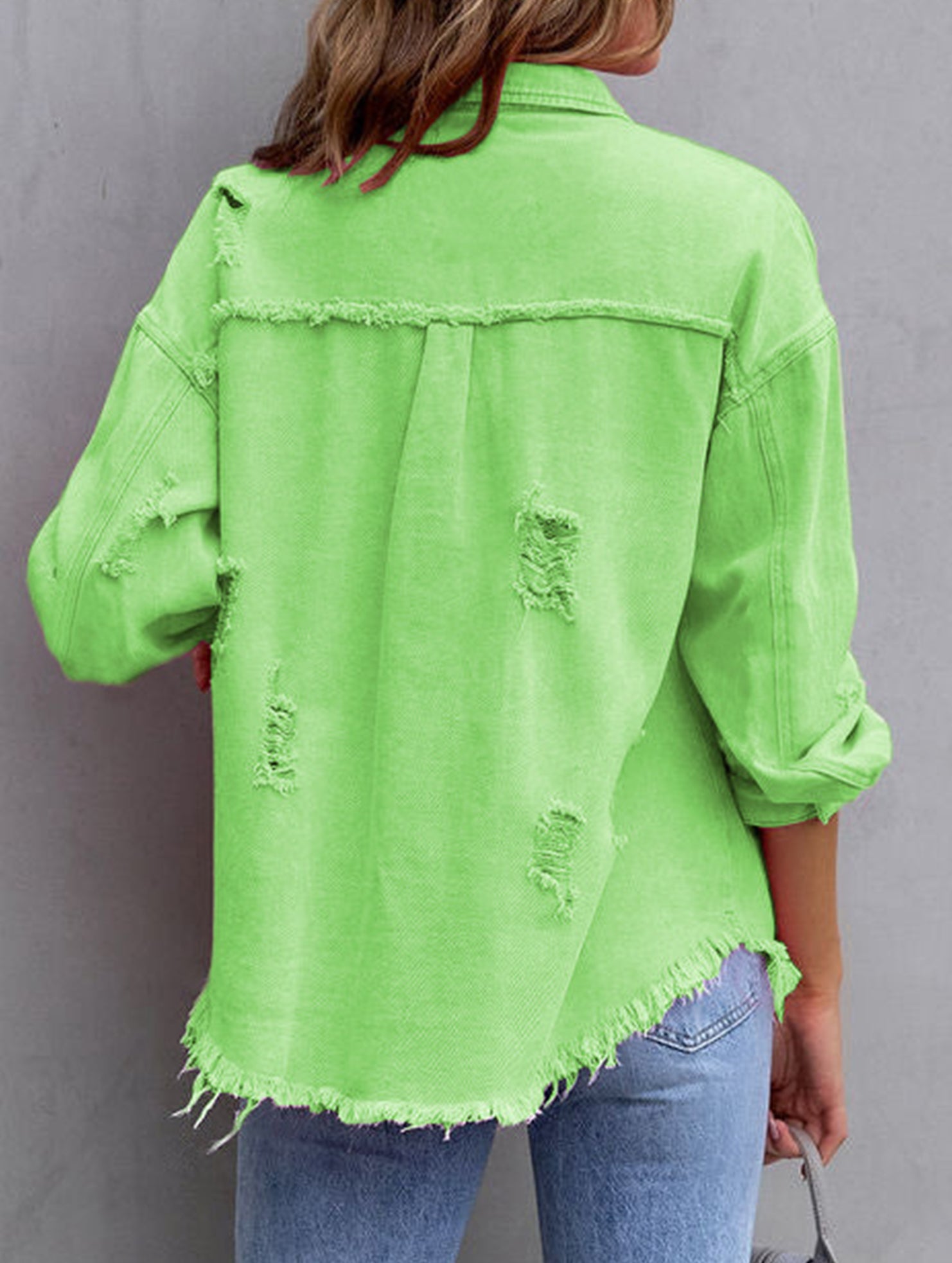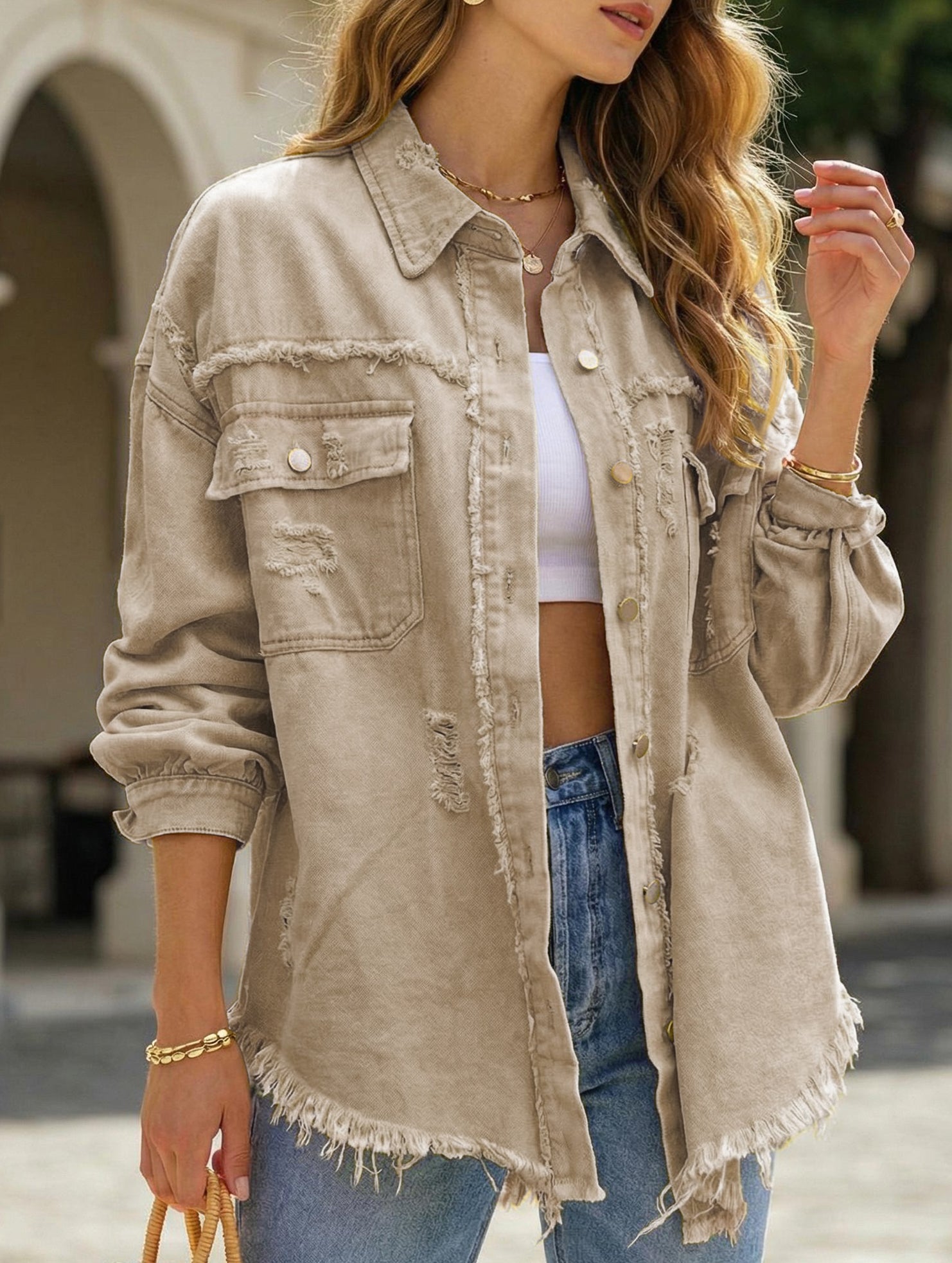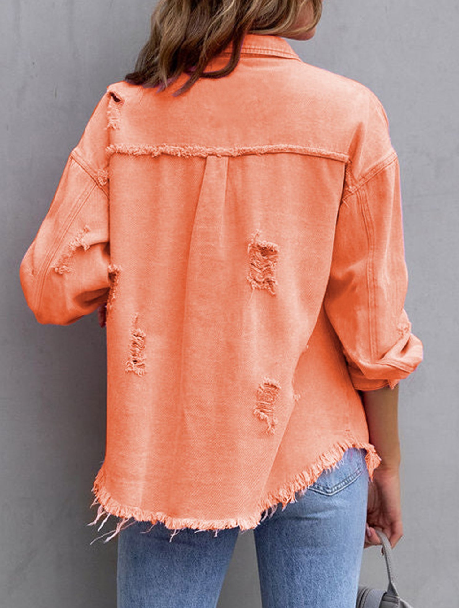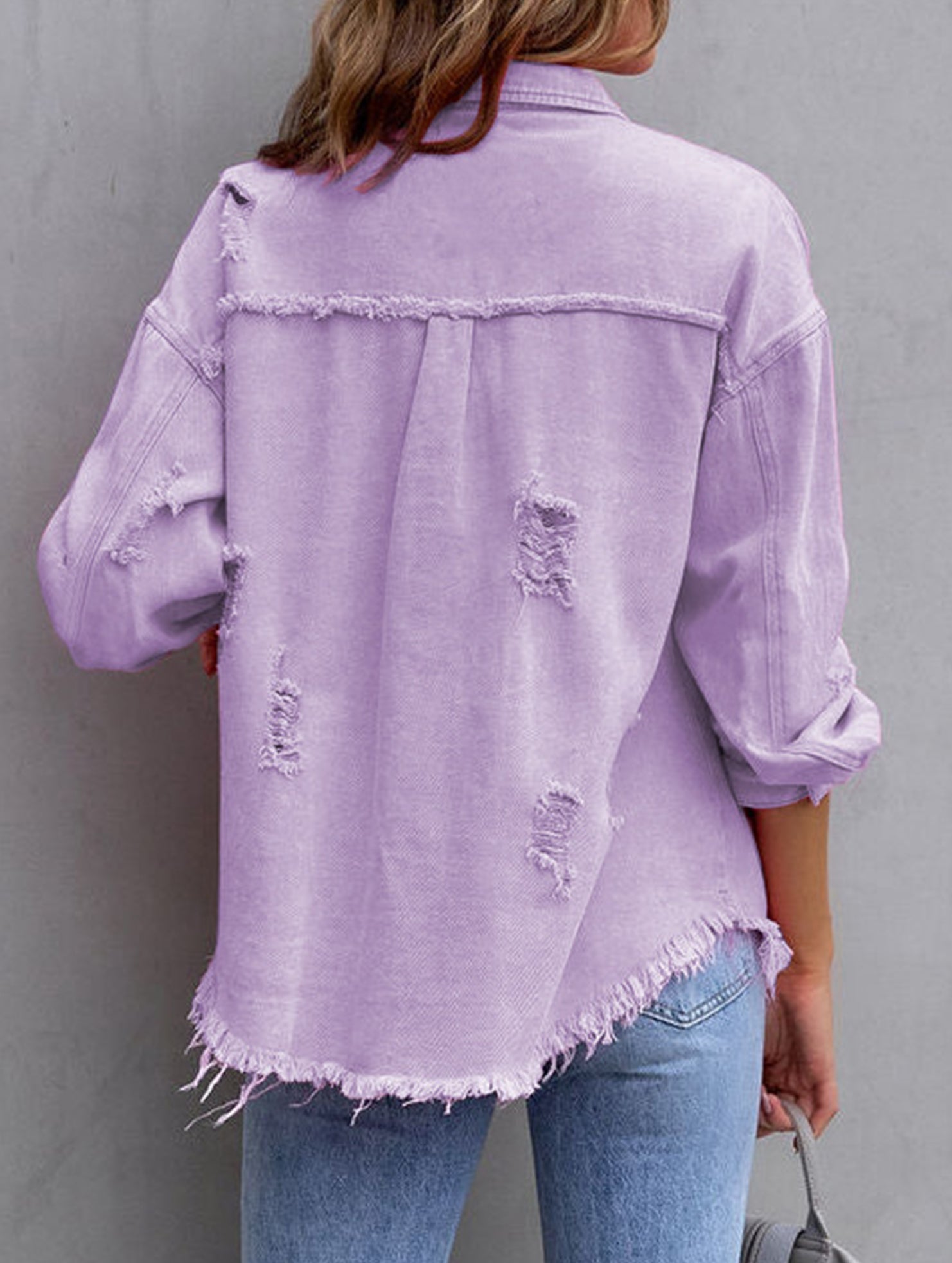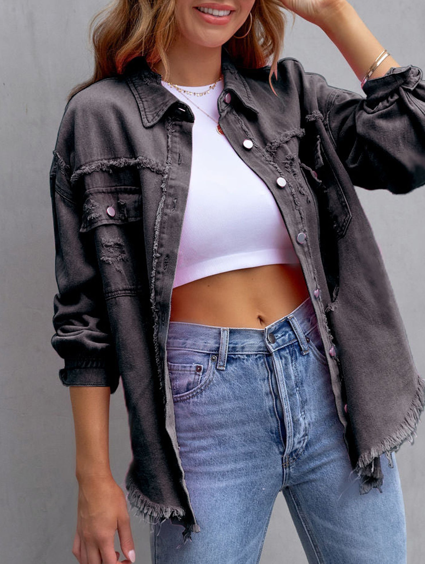 xRAW EDGE SOLID COLOR LAPEL DENIM JACKET