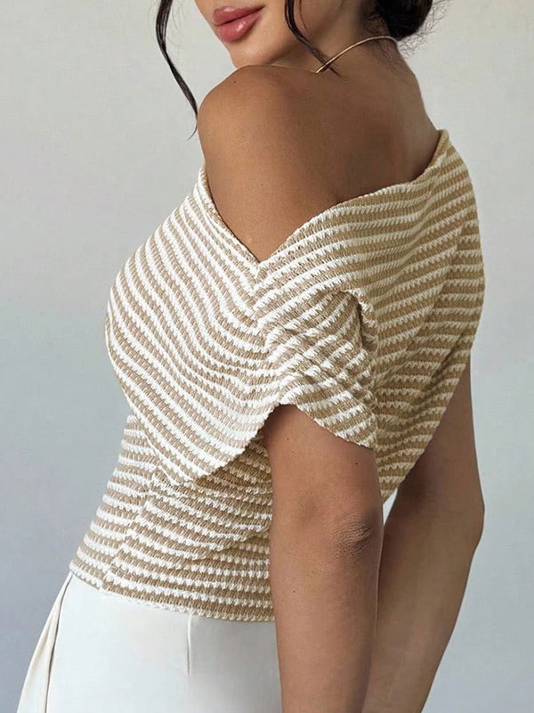 A versatile addition to your wardrobe, the One Shoulder Stripe Knit Tee works across multiple occasions.