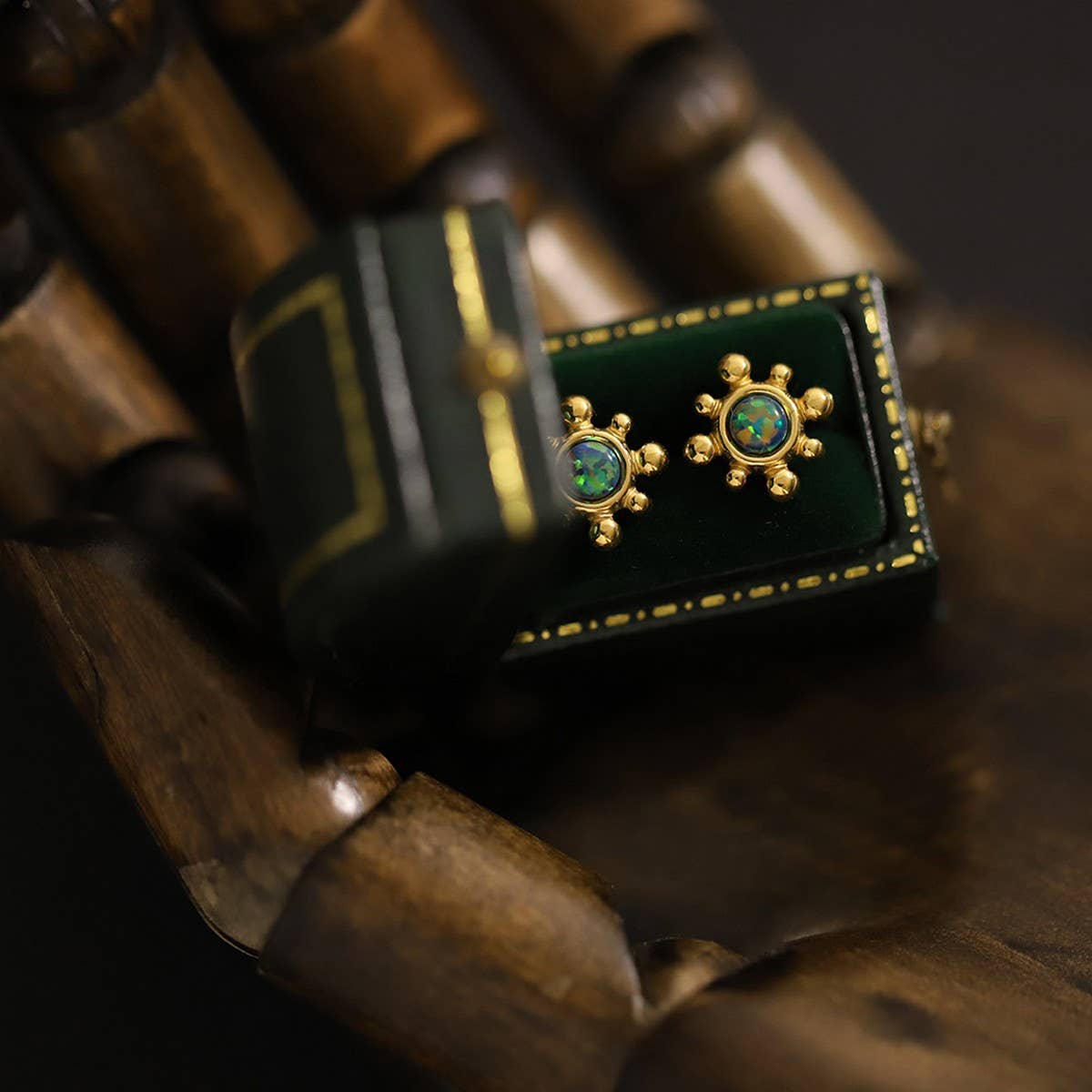 A polished essential, the Opal Sunflower Stud Earrings Gold Electroplated transitions seamlessly from casual to elevated looks.
