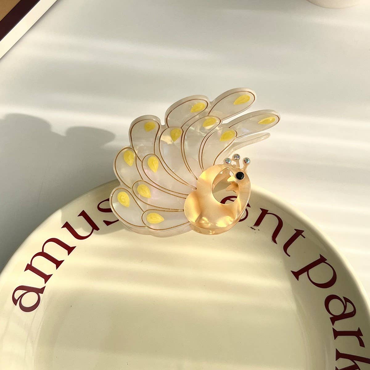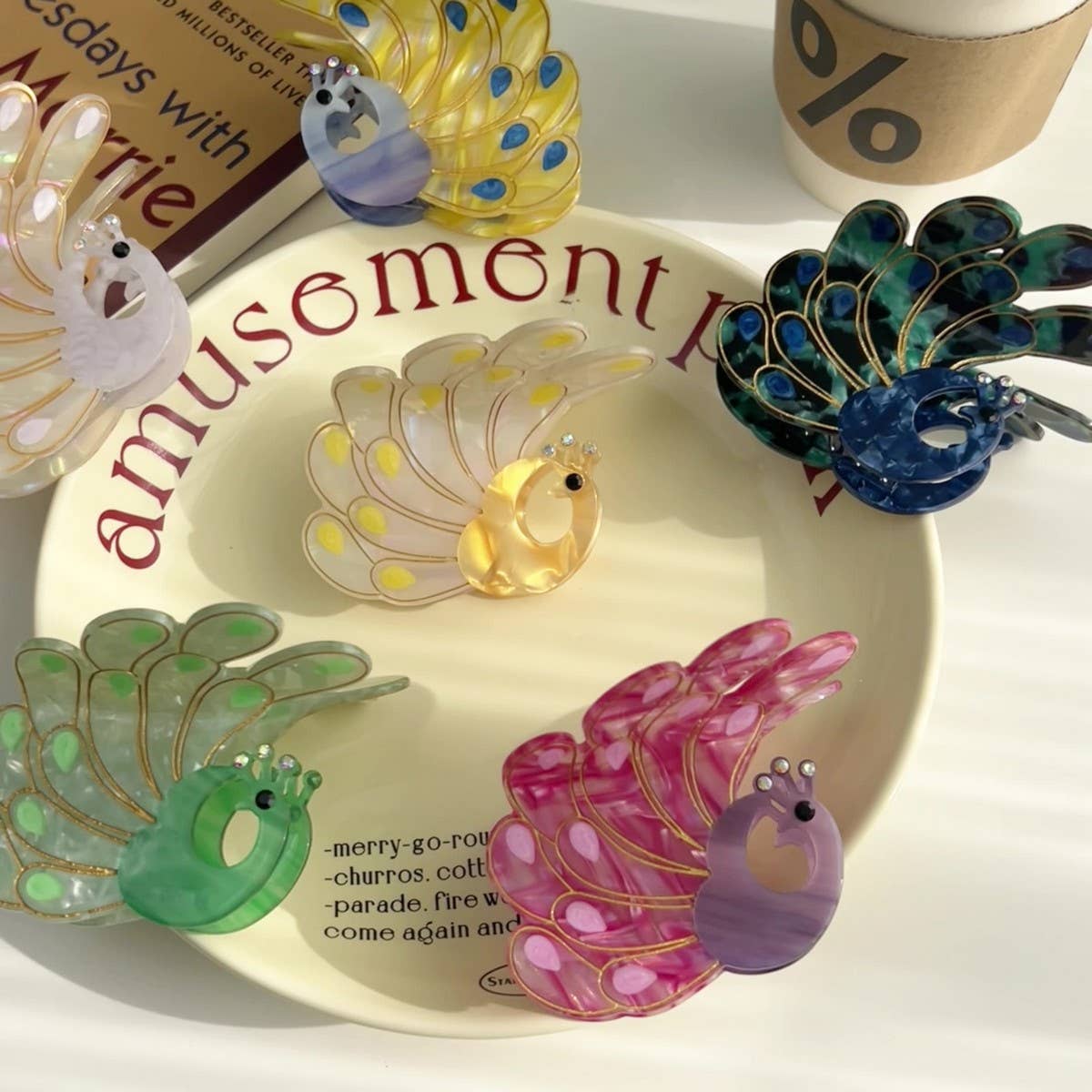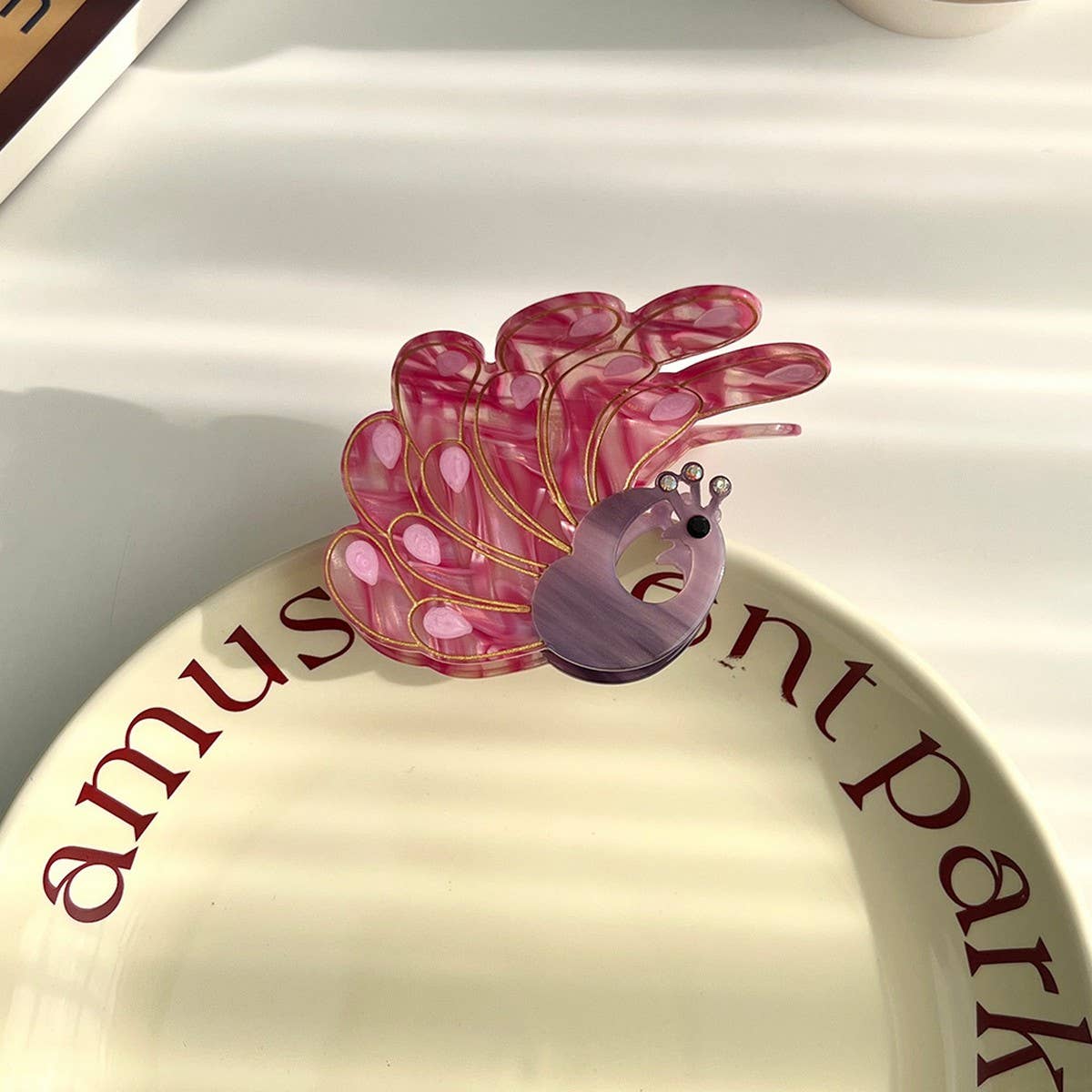 The Peacock Acetate Hair Claw Rhinestone Chic Clip adds a refined touch with its clean and modern silhouette.