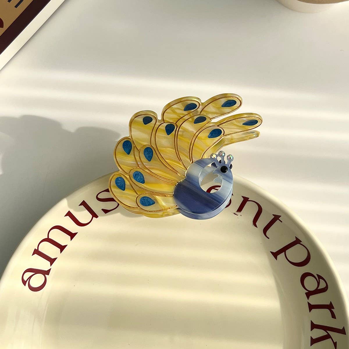 PEACOCK ACETATE HAIR CLAW RHINESTONE CHIC CLIP_CWAHA5900