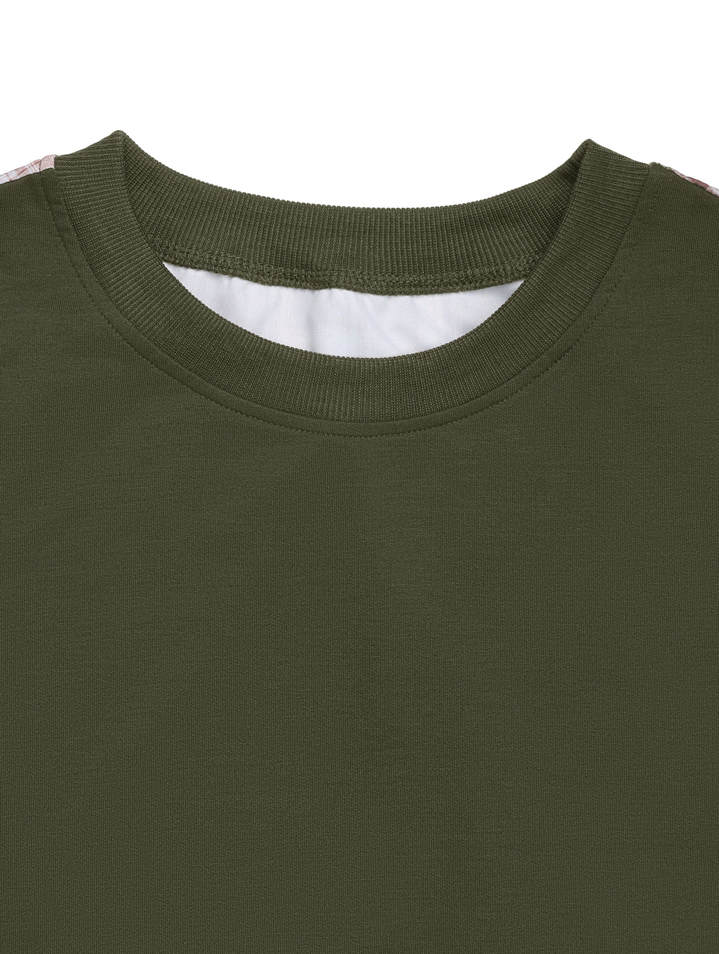 xPlaid Patchwork Crew Neck Pullover Sweatshirt