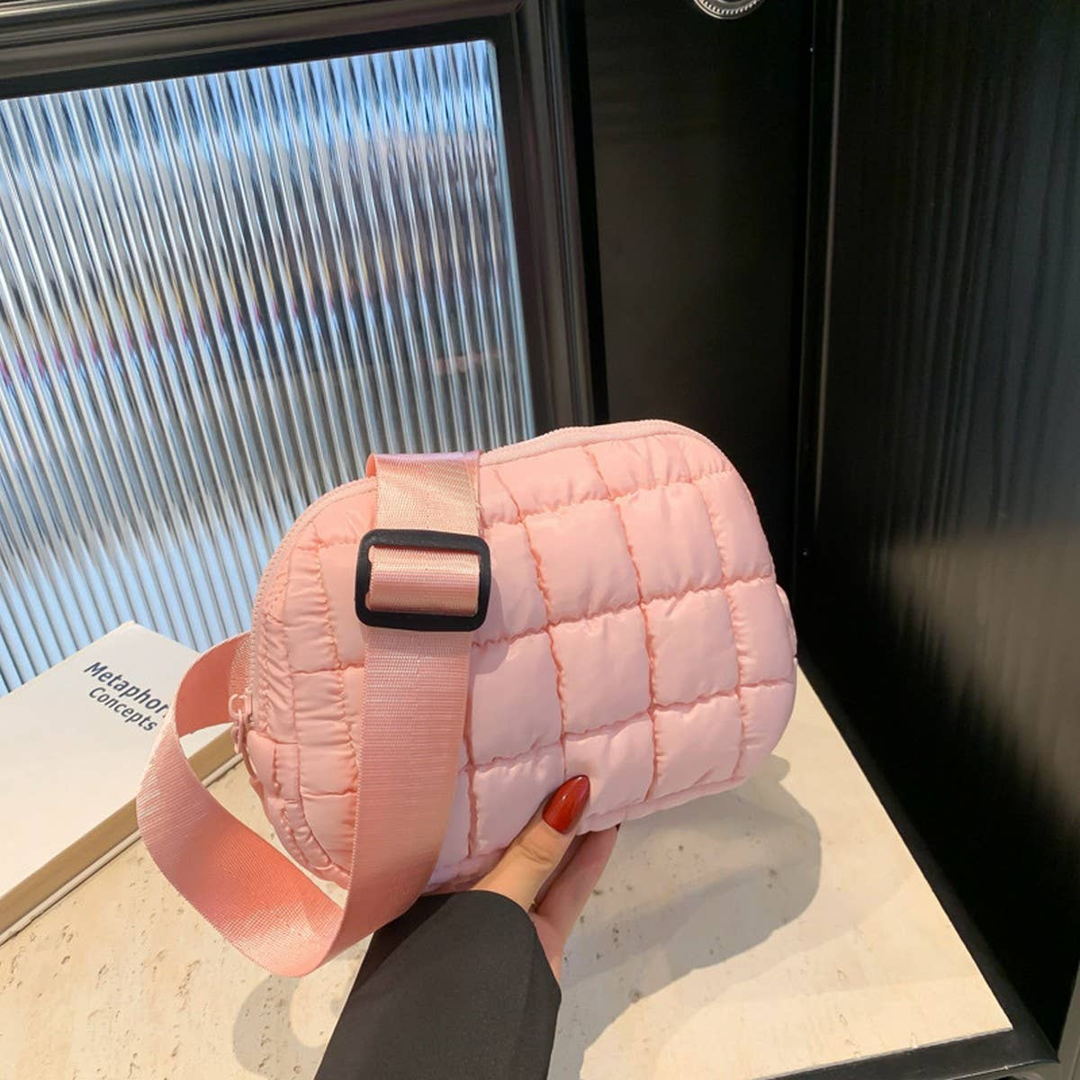 PLAID PUFFER WAIST BAG CROSSBODY CHEST PACK_CUAB00496
