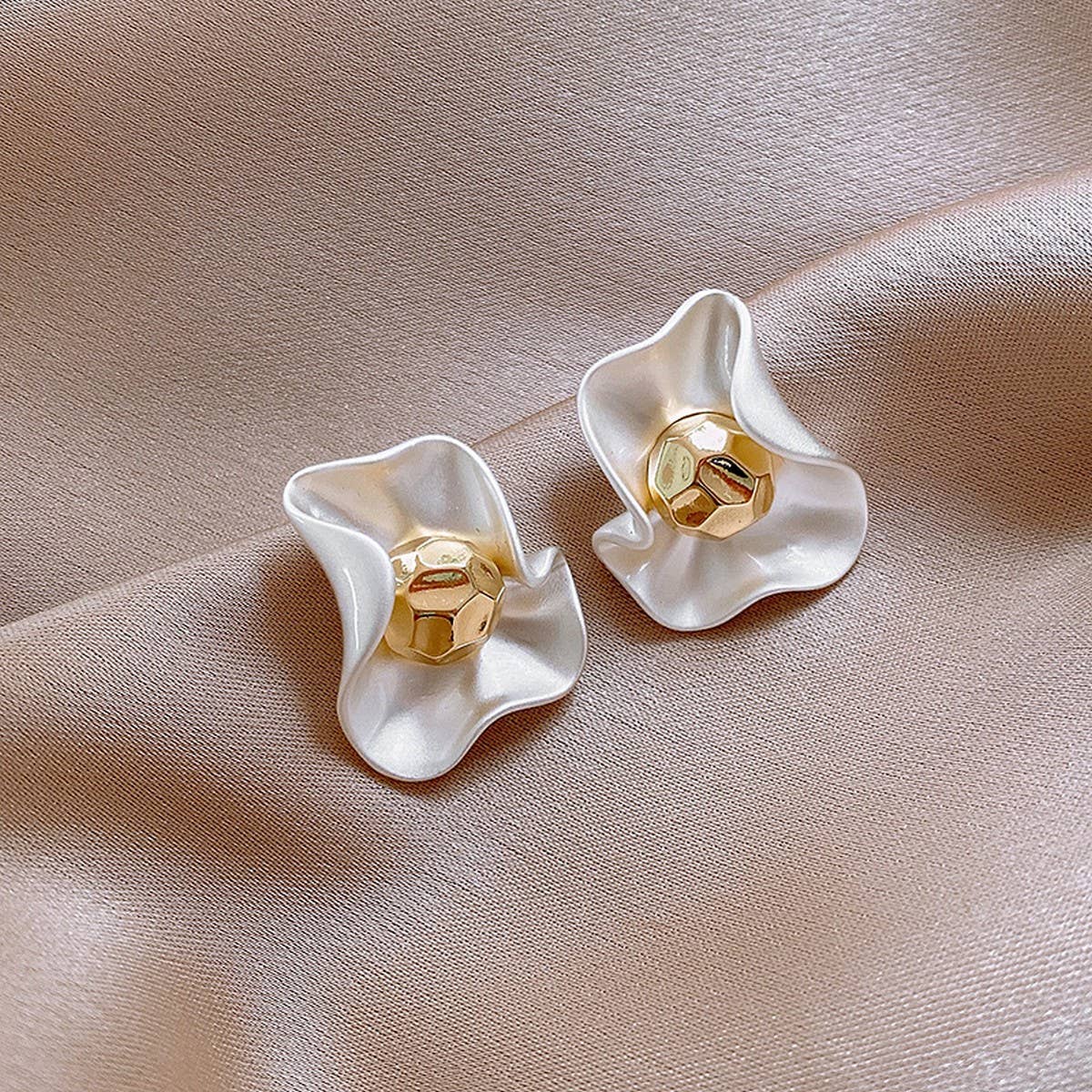 The Pleated Round Flower Temperament Earrings brings a fresh balance of structure and ease into your wardrobe.