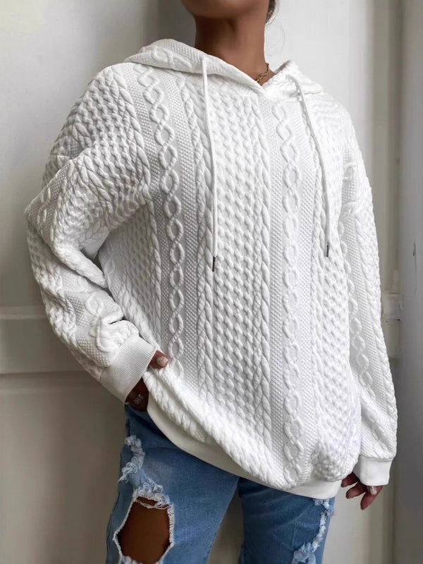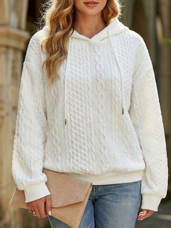 Plus Size Hooded Cable Knit Sweatshirt